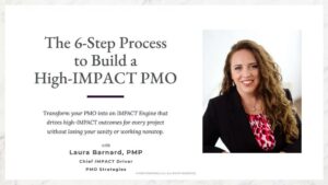 I can’t wait to hear what you think of this episode and if you want to dive deeper into my step-by-step program to help you build that PMO right from the start, you can join this free masterclass on my 6-Step Process to Build a High-IMPACT PMO by clicking here or if you’re ready to dive deep with hands-on support and guidance from me, check out my IMPACT Engine PMO training and implementation program here.Â