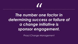 The number one factor in determining success or failure of your change initiative is sponsor engagement!
